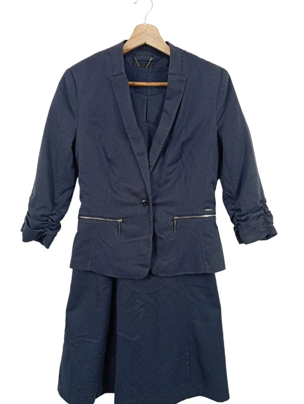 - Orsay Strick Twin Set, blau Punktemuster