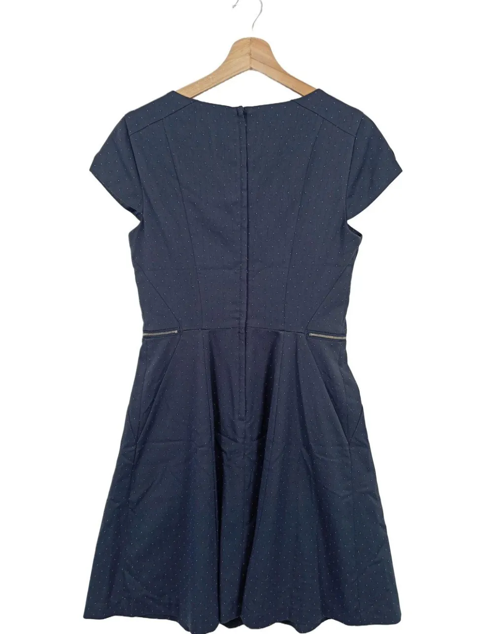 - tiefer V-Ausschnitt, Umlegekragen, Bund am Ärmelsaum, Knopfverschluss, Reißverschlusstaschen, Punktemuster, Business-Look, Casual-Look