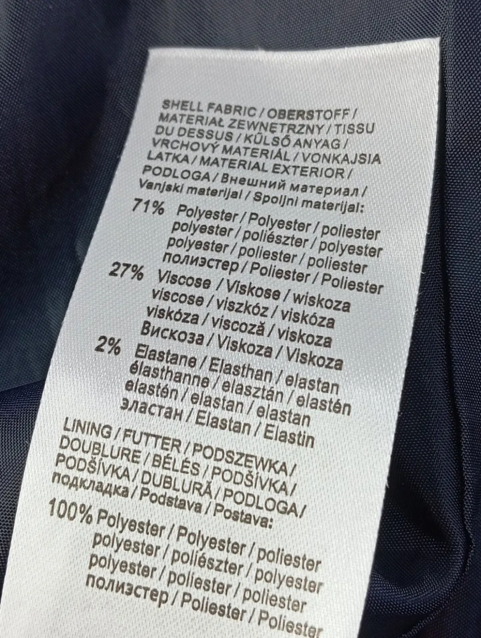 - Außenmaterial: 71% Polyester, 27% Viskose, 2% Elasthan