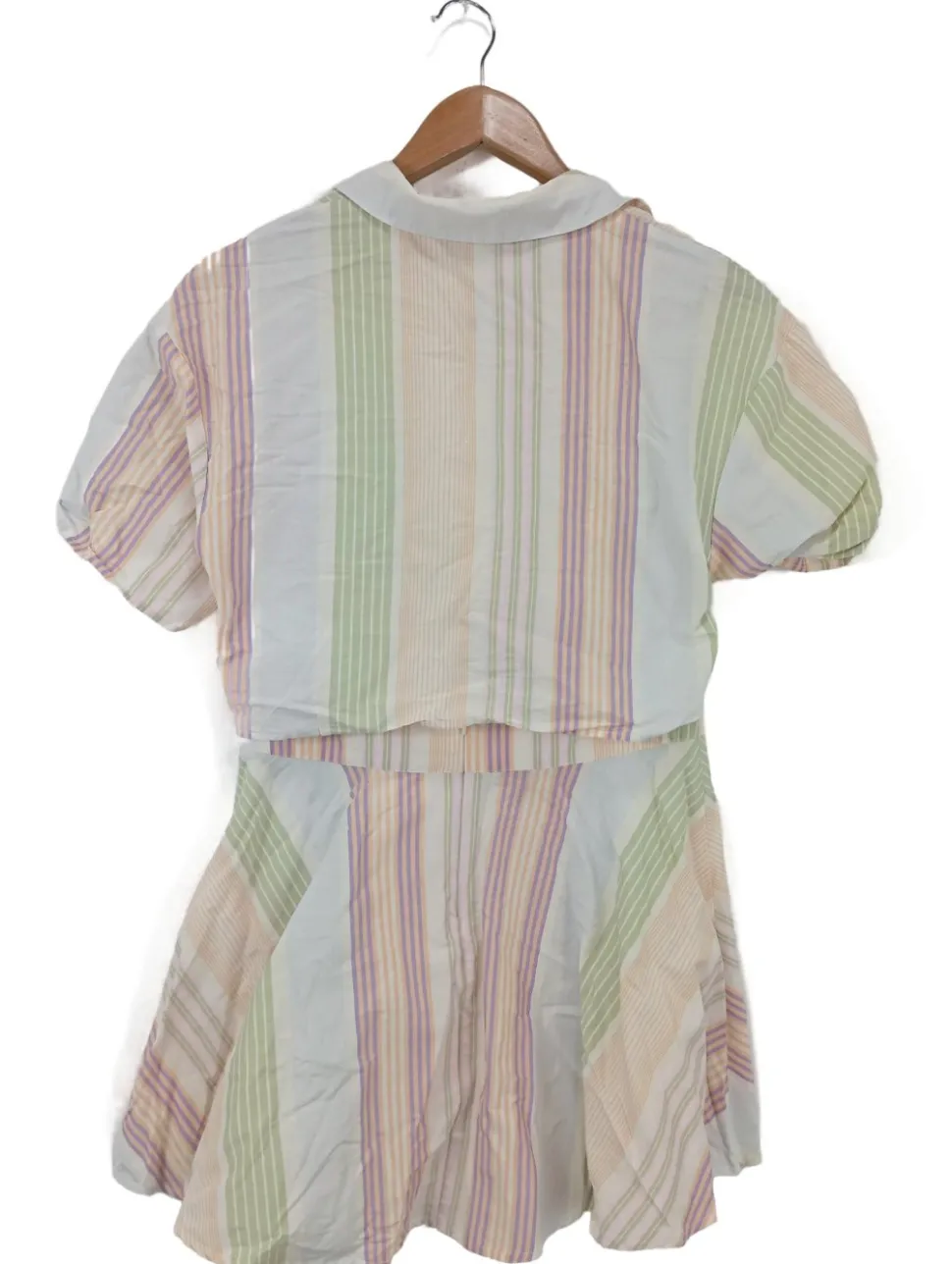 - V-Ausschnitt, Hemdkragen, Bund am Ärmelsaum, Knopfverschluss, Nahtreißverschluss, Reißverschluss hinten, Streifenmuster, Casual-Look, Elegant