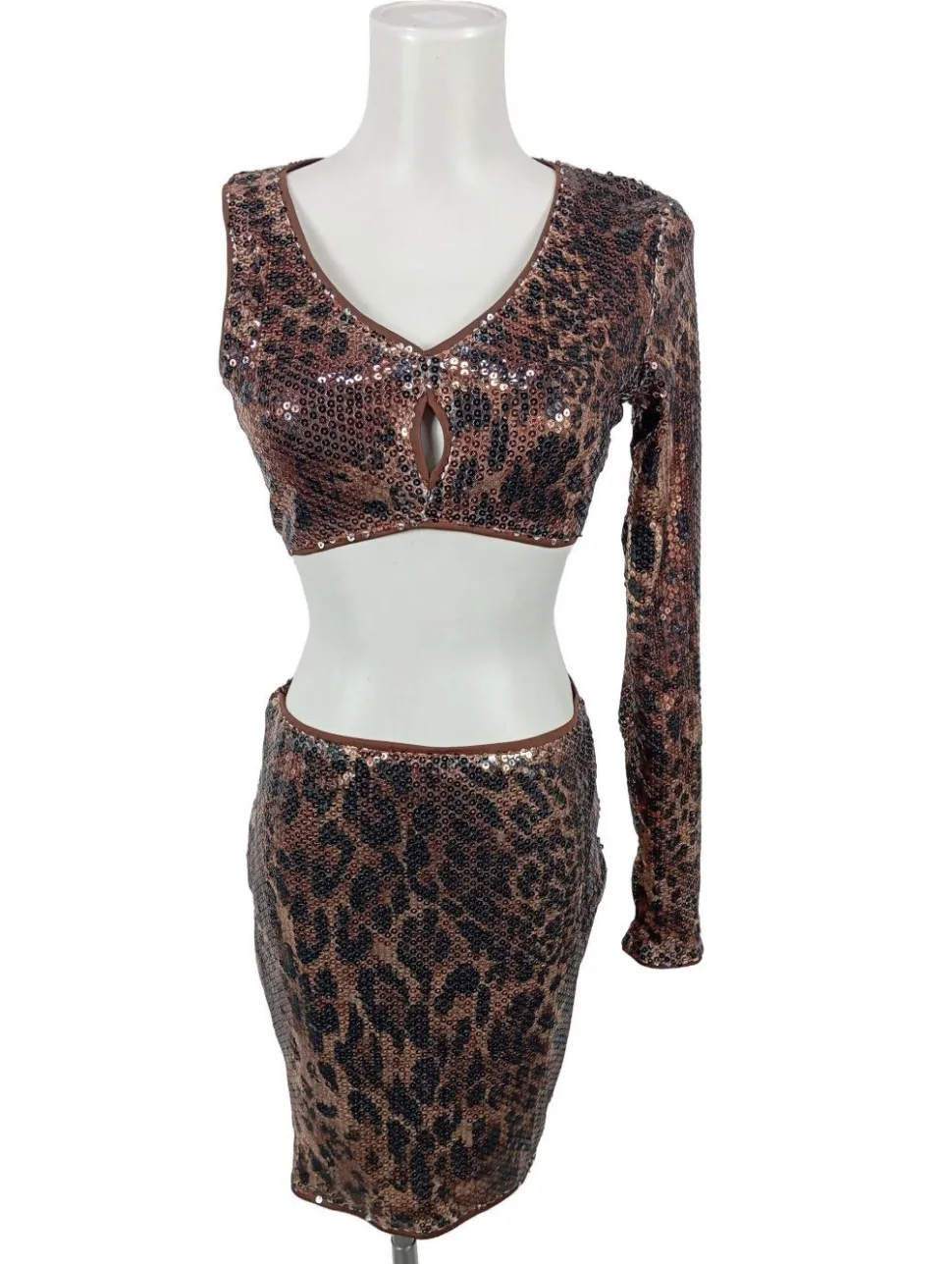 - SheIn Strick Twin Set, braun-schwarz Allover-Druck