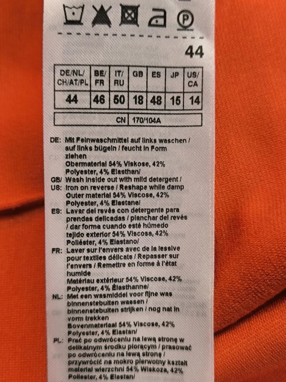 - Außenmaterial: 54% Viskose, 42% Polyester, 4% Elasthan