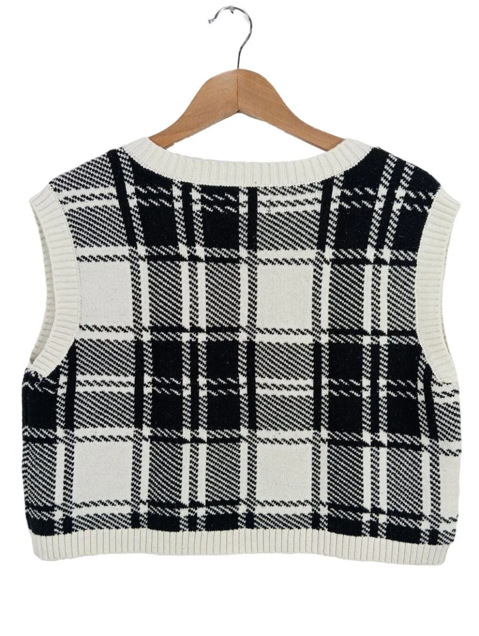 - V-Ausschnitt, Karomuster, Casual-Look, schlichter Stil, Street-Fashion-Look