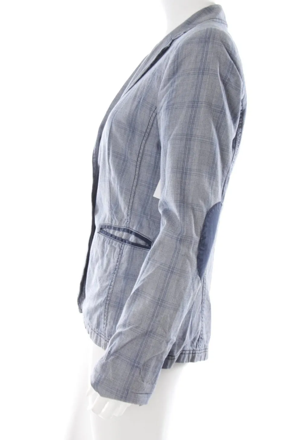- tiefer V-Ausschnitt, Reverskragen, abgerundeter Saum, Knopfverschluss, Pattentaschen, Karomuster, elastisch, glatt, leicht, weich, Casual-Look