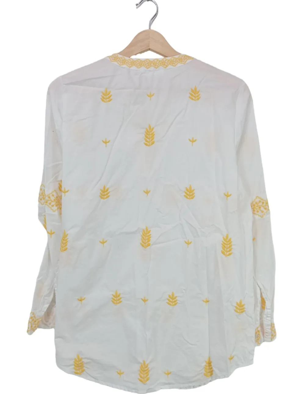 - Rundhalsausschnitt, Schlüssellochausschnitt, Manschetten, Schriftzug gestickt, Casual-Look, schlichter Stil, Vintage-Look