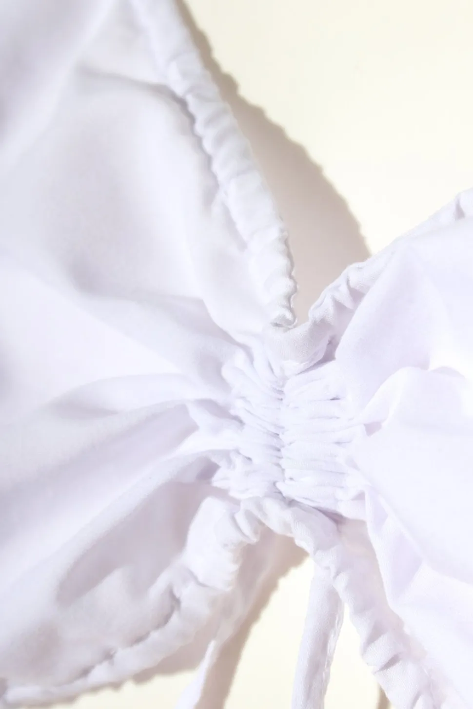 - V-Ausschnitt, Rüschenmanschette, Knotenverschluss, Elegant, klassischer Stil