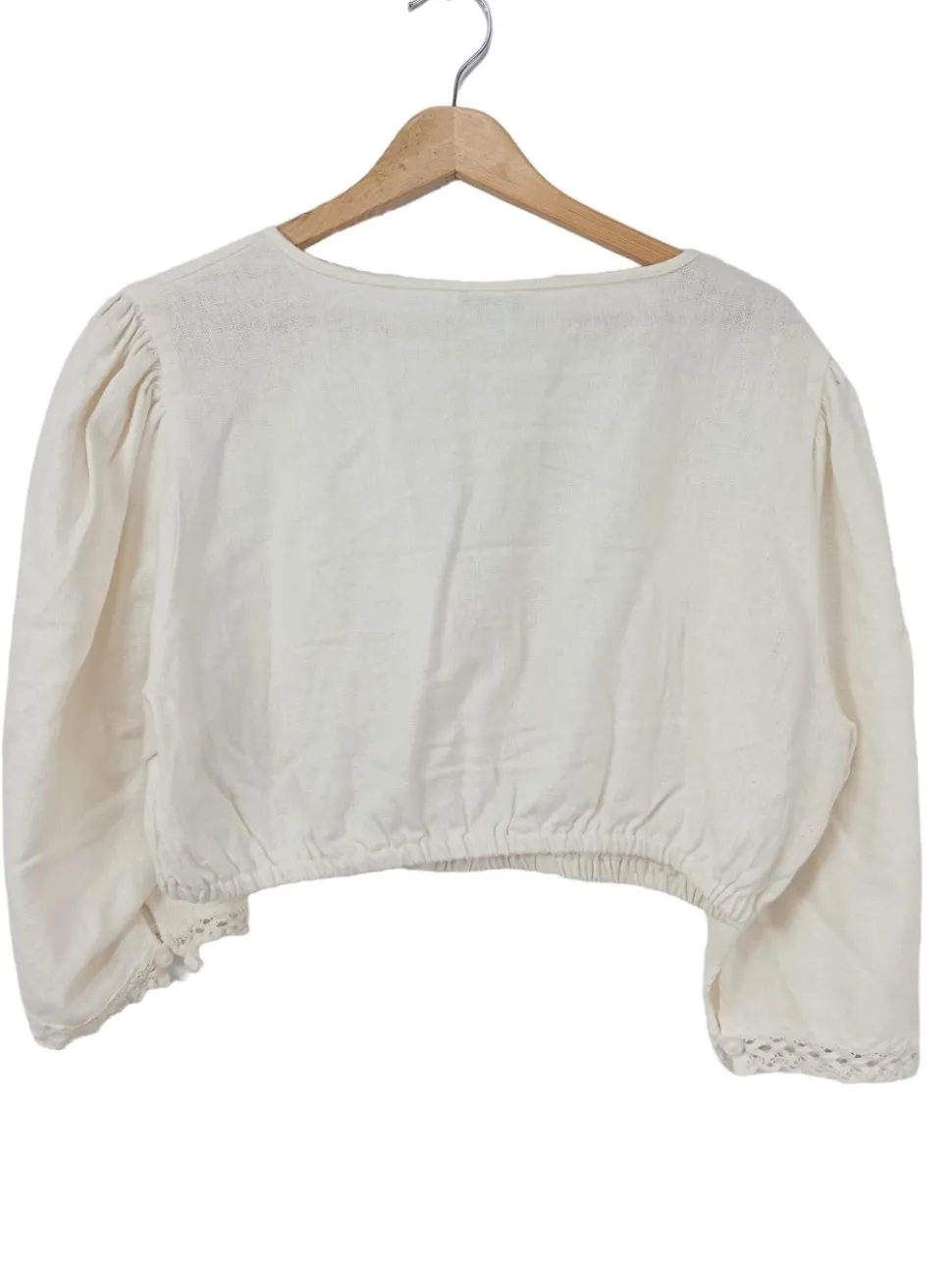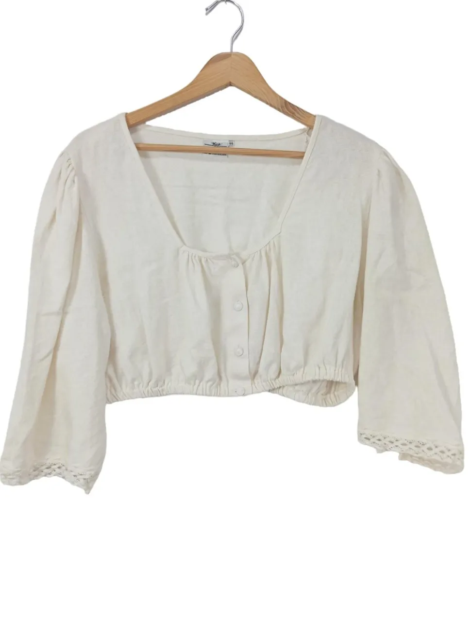 - Kareeausschnitt, Raffung am Ärmelsaum, Knopfverschluss, Casual-Look, schlichter Stil, Vintage-Look