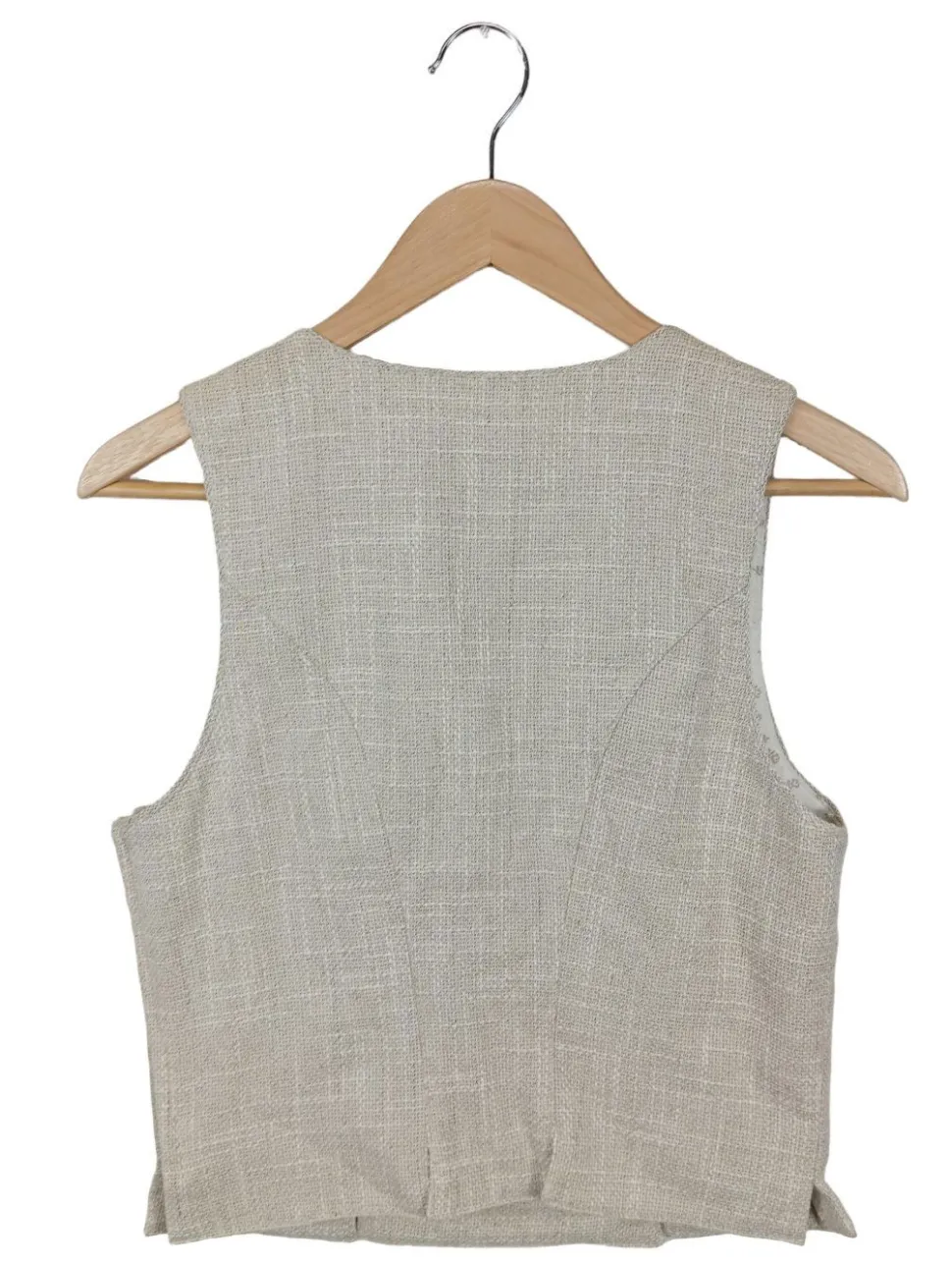 - Außenmaterial: 44% Baumwolle, 32% Leinen, 17% Polyester, 7% Seide