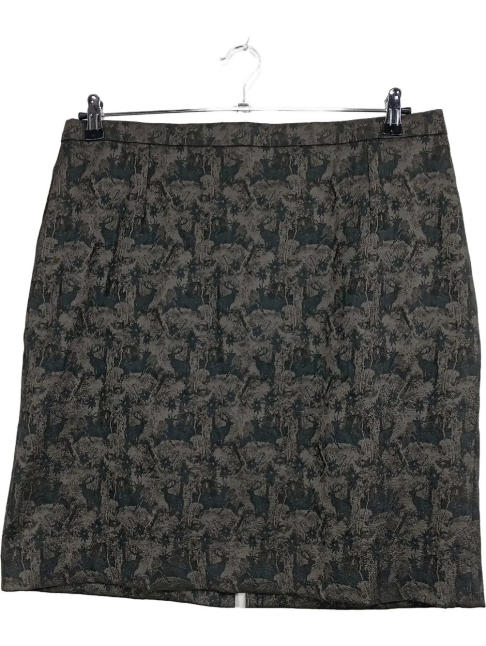 - Kurzbeschreibung: Eleganter Trachtenrock mit dekorativem Hirschmuster in Grau-Grün. Klassischer Schnitt mit kleinem Schlitz hinten.