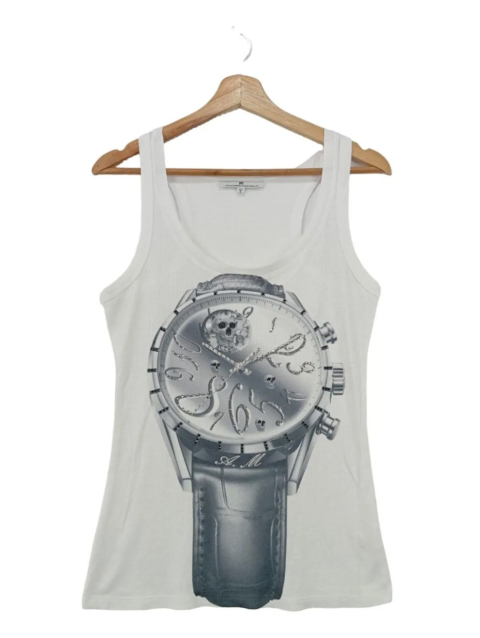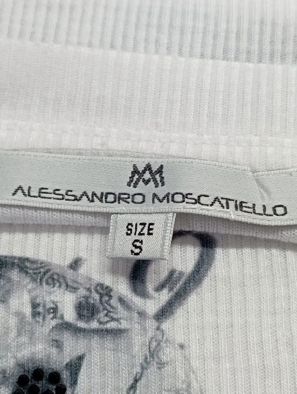 - Alessandro Moscatiello Trägertop, weiß-schwarz Motivdruck