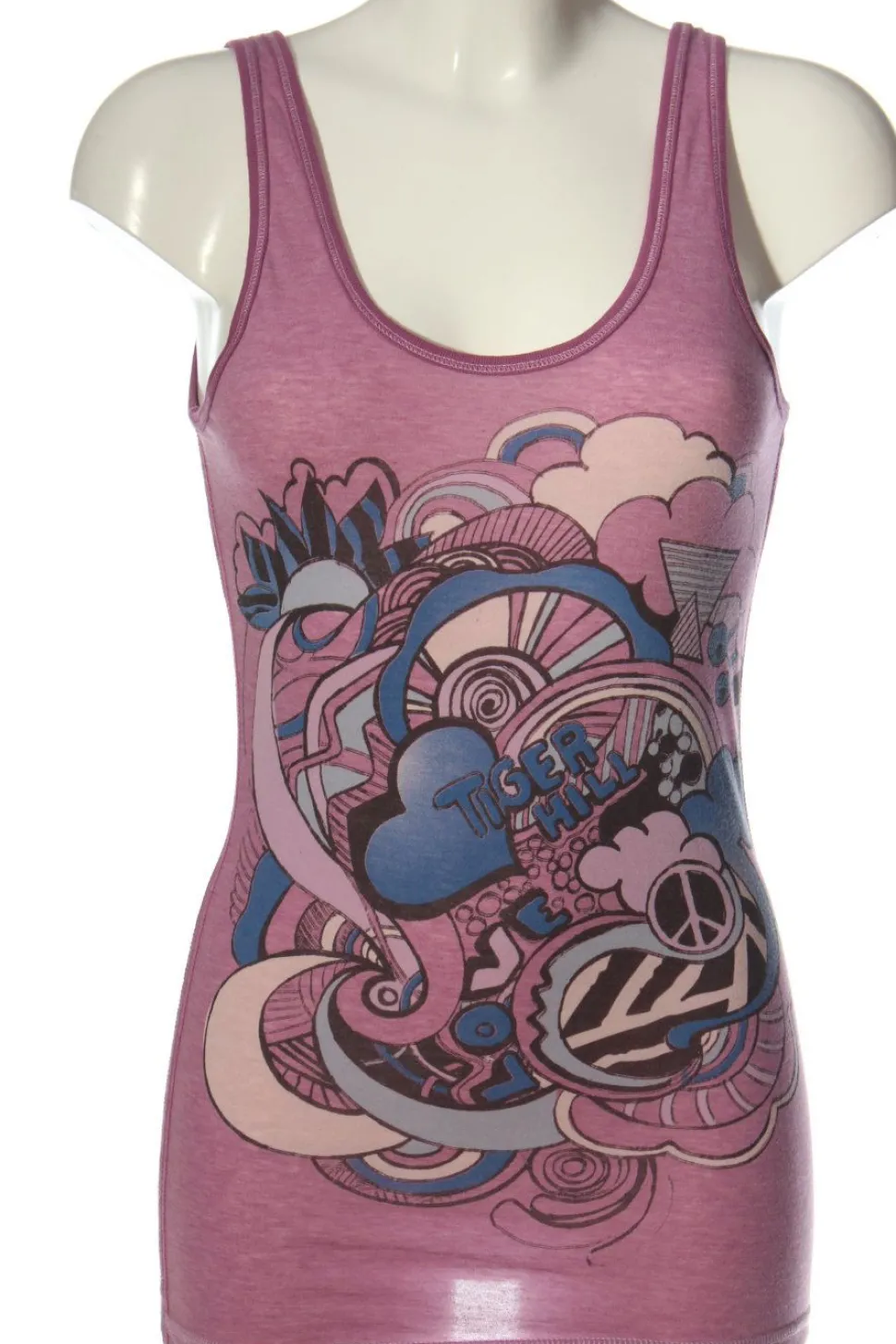 - Spaghettiträger, meliert, Motivdruck, Casual-Look, schlichter Stil, Street-Fashion-Look, Transparenz-Optik