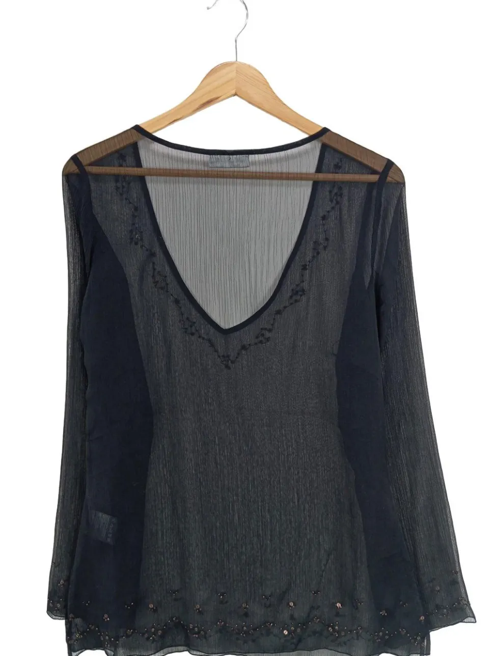 - V-Ausschnitt, Bund am Ärmelsaum, Party-Look, Transparenz-Optik
