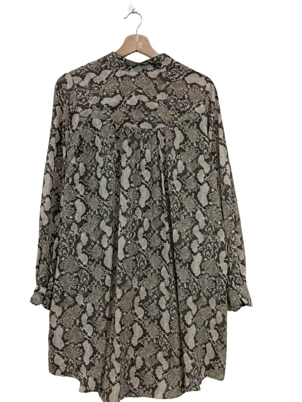 - Stehkragen, Knopfverschluss am Ärmelsaum, Knopfverschluss, Allover-Druck, Animalmuster, Casual-Look, Elegant, extravaganter Stil