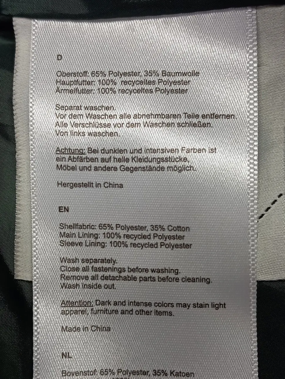 - Außenmaterial: 65% Polyester, 35% Baumwolle