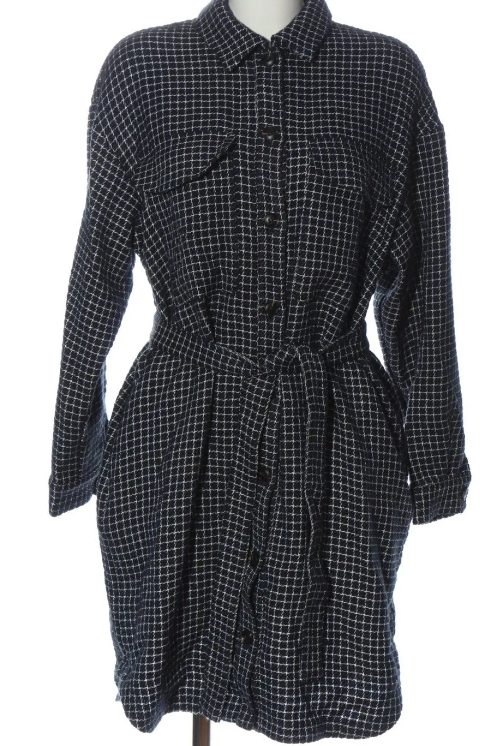 - Umlegekragen, Knopfverschluss am Ärmelsaum, Knopfverschluss, Schleifenverschluss, Pattentaschen, Allover-Druck, Karomuster, Casual-Look, klassischer Stil, Vintage-Look