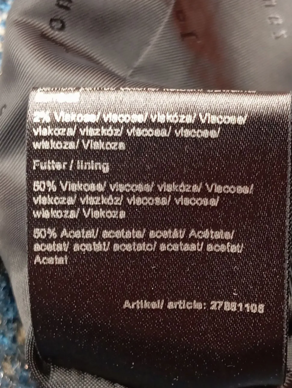 - Außenmaterial: 13% Wolle, 43% Polyester, 39% Polyacryl, 3% Baumwolle, 2% Viskose