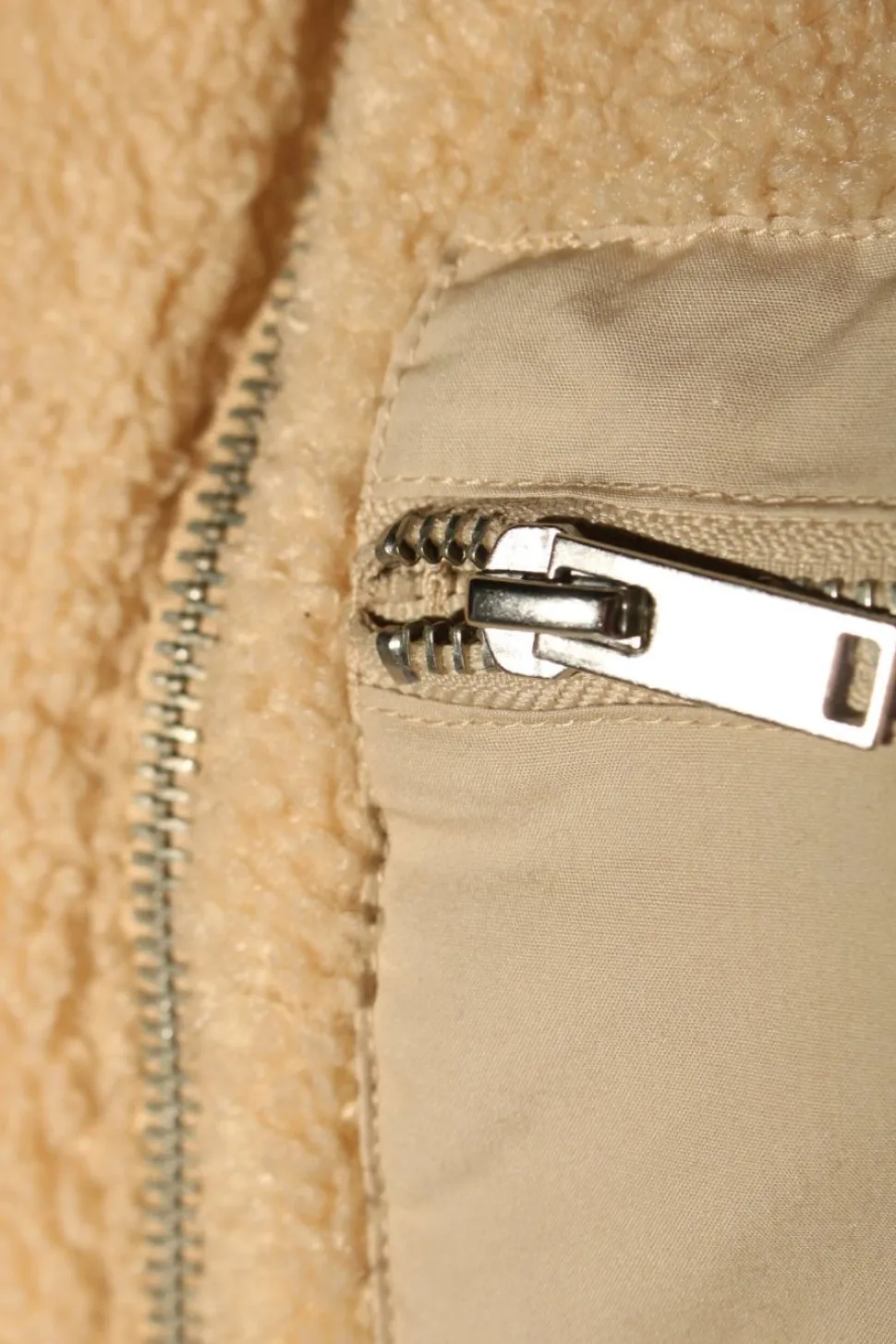 - hochgeschnittener Kragen, aufgesetzte Tasche (einzeln), Reißverschlusstasche einzeln, Casual-Look, schlichter Stil, Street-Fashion-Look