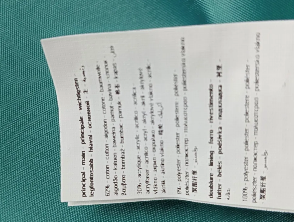- Außenmaterial: 62% Baumwolle, 30% Polyacryl, 8% Polyester