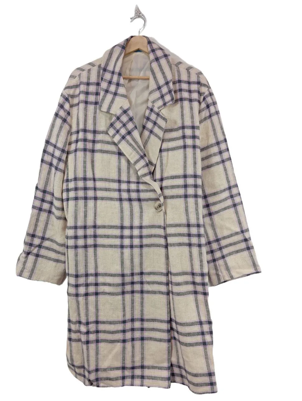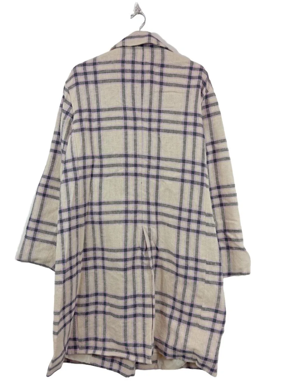 - Gina Übergangsmantel, wollweiß-lila Karomuster