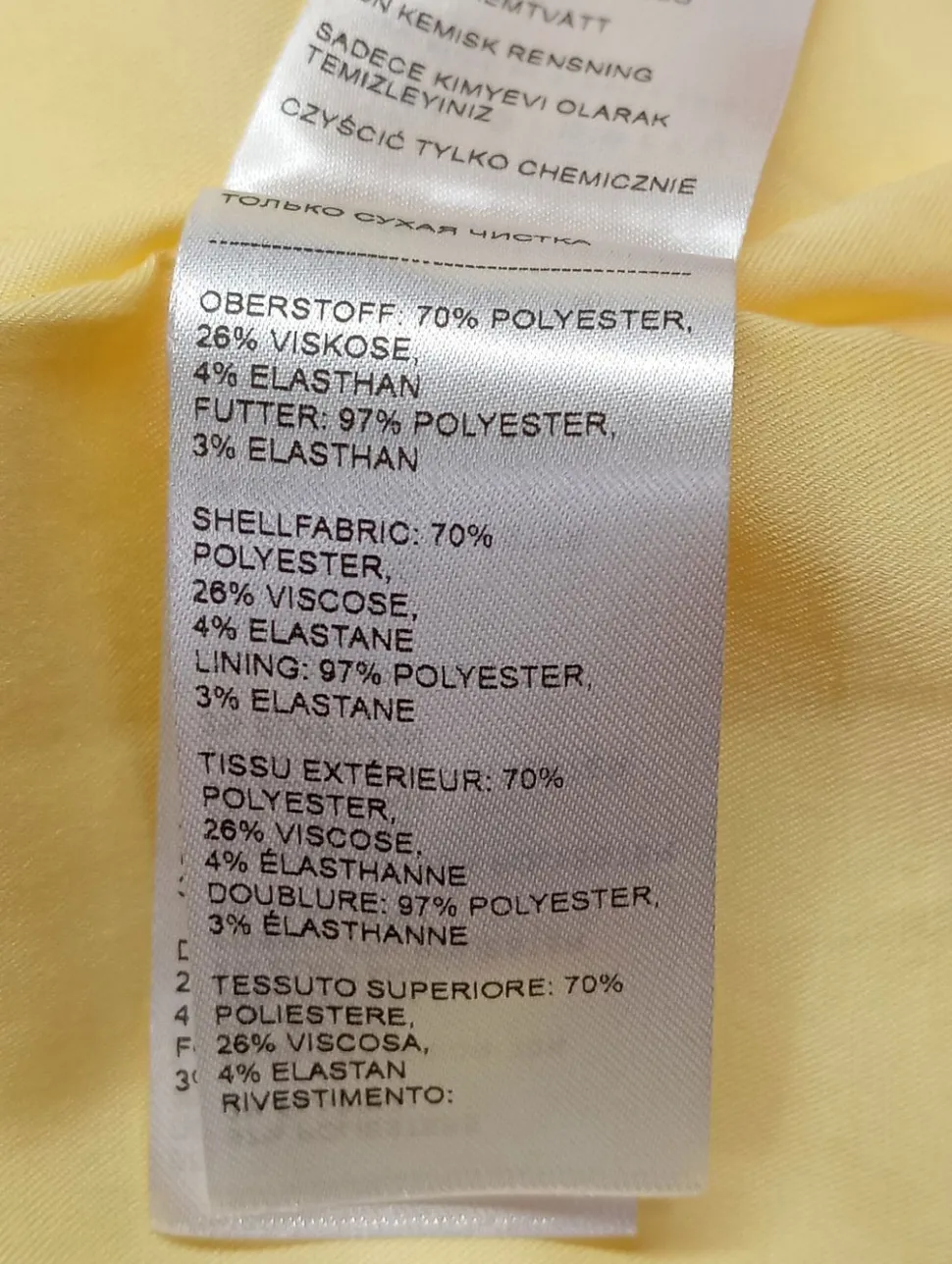 - Außenmaterial: 70% Polyester, 26% Viskose, 4% Elasthan