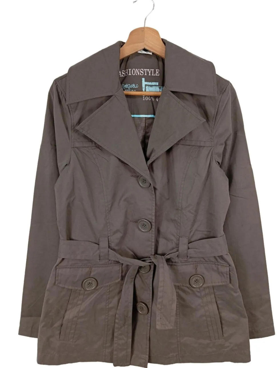 - V-Ausschnitt, Umlegekragen, Bund am Ärmelsaum, Knopfverschluss, Eingriffstaschen, Leistentaschen, Casual-Look, klassischer Stil