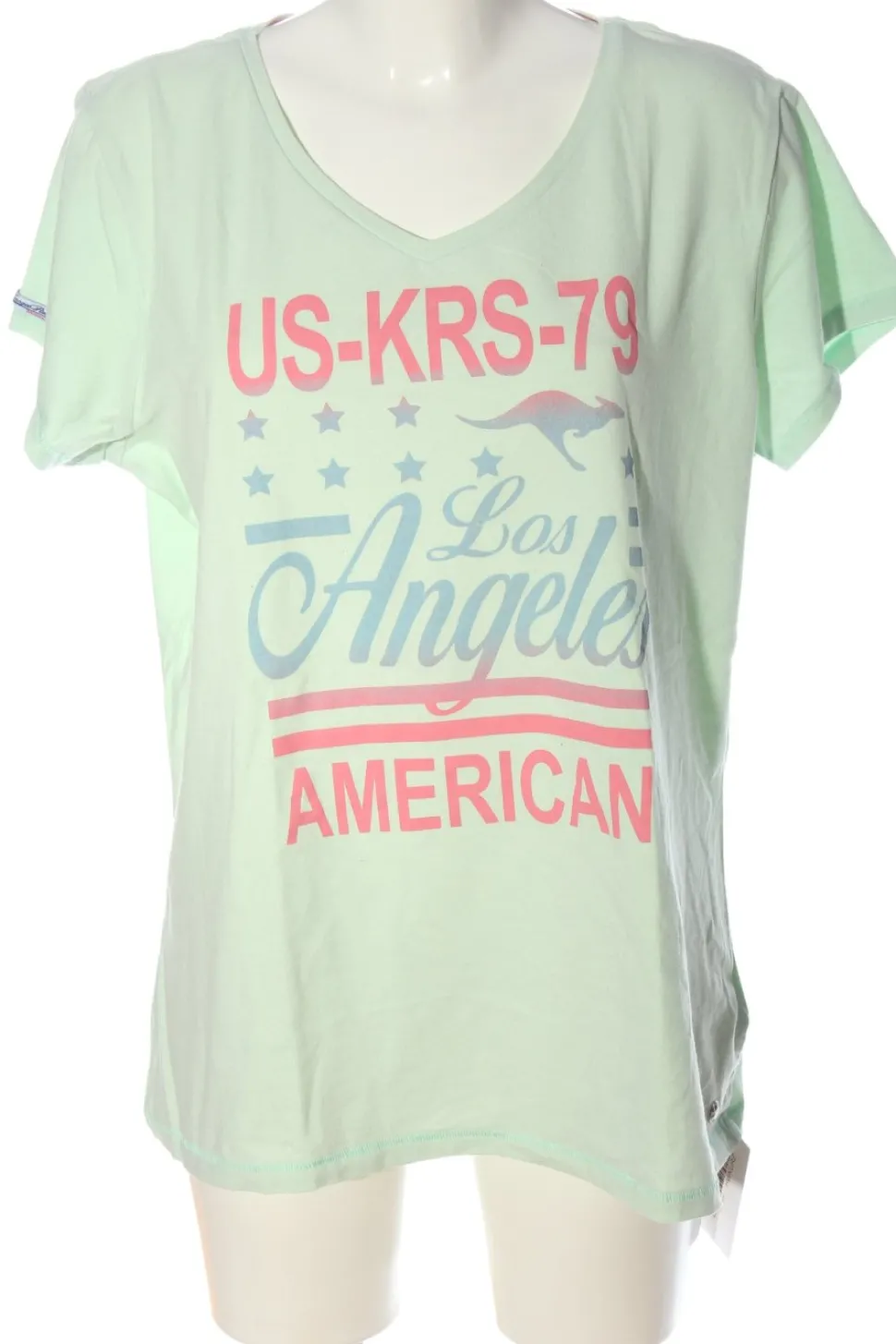 - Kangaroos V-Ausschnitt-Shirt, grün Schriftzug gedruckt