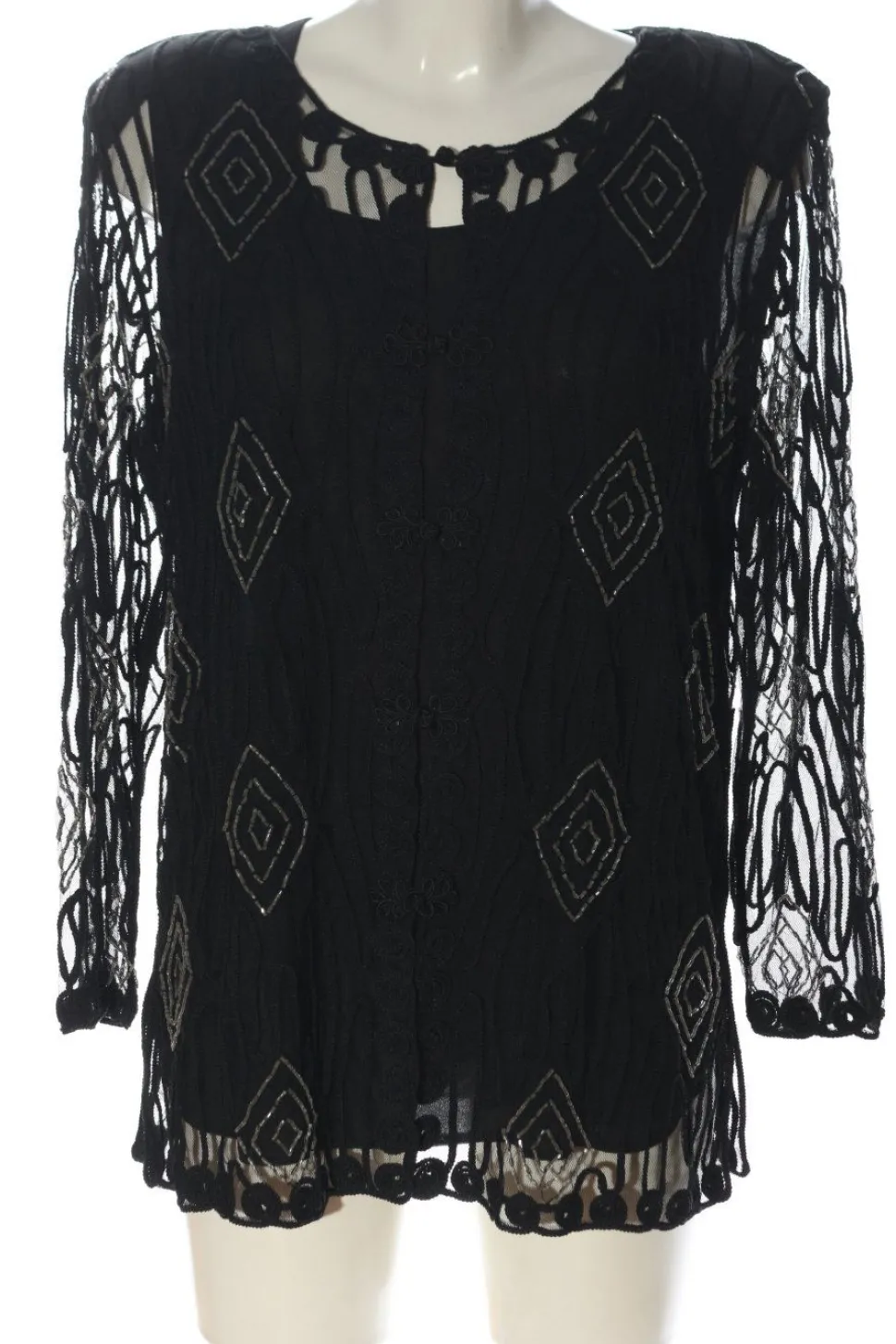 - Rundhalsausschnitt, Schlüssellochausschnitt, offene Kanten am Ärmelsaum, Knopfverschluss, Party-Look, Transparenz-Optik