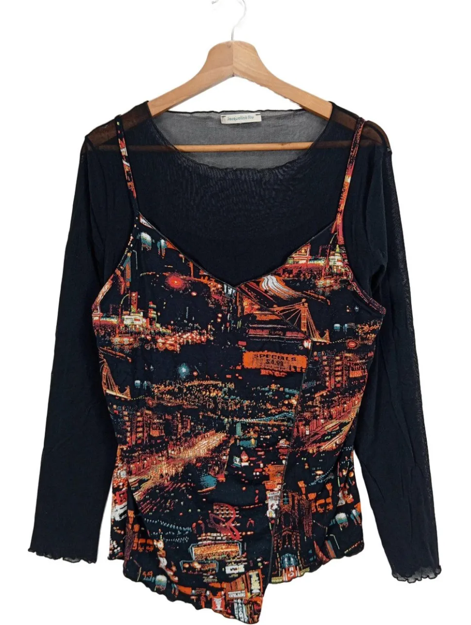 - Jacqueline Riu Web Twin Set, schwarz-rot Allover-Druck