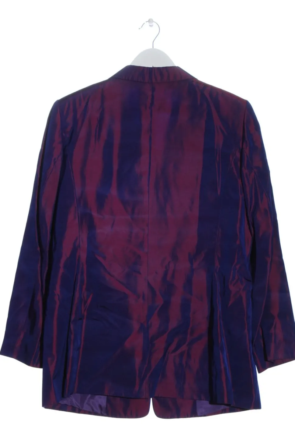 - V-Ausschnitt, Reverskragen, Bund am Ärmelsaum, Paspeltaschen, abstraktes Muster, Farbverlauf, Mustermix, Elegant, Glanz-Optik, Street-Fashion-Look