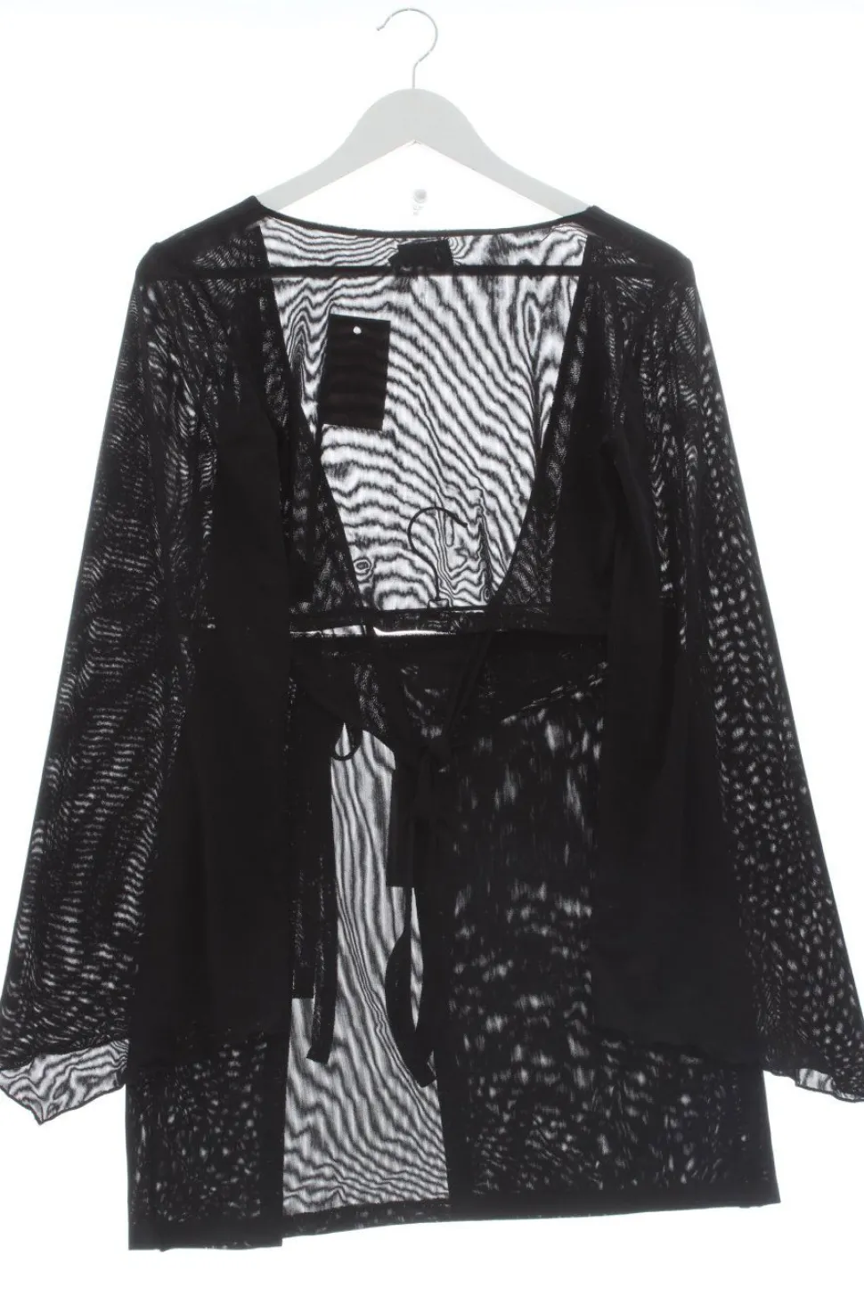 - tiefer V-Ausschnitt, offene Kanten am Ärmelsaum, Knotenverschluss, Webmuster, Casual-Look, Street-Fashion-Look