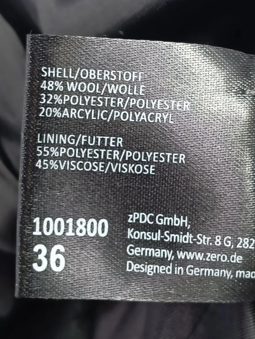 - Material (Futter): 55% Polyester, 45% Viskose