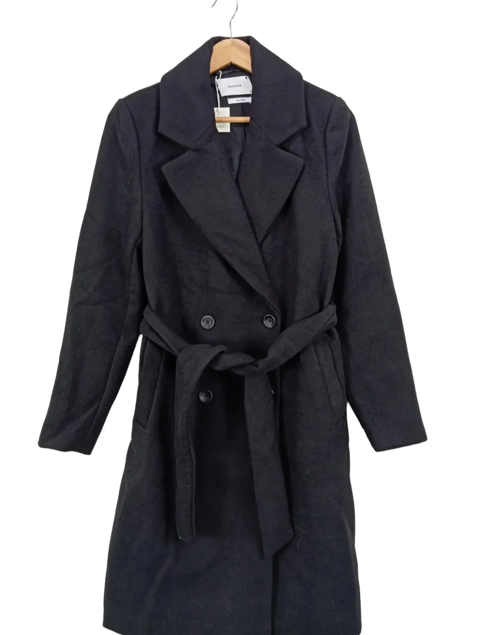 - V-Ausschnitt, Reverskragen, Bund am Ärmelsaum, doppelreihiger Knopfverschluss, Knopfverschluss, Leistentaschen, Casual-Look, schlichter Stil, Street-Fashion-Look