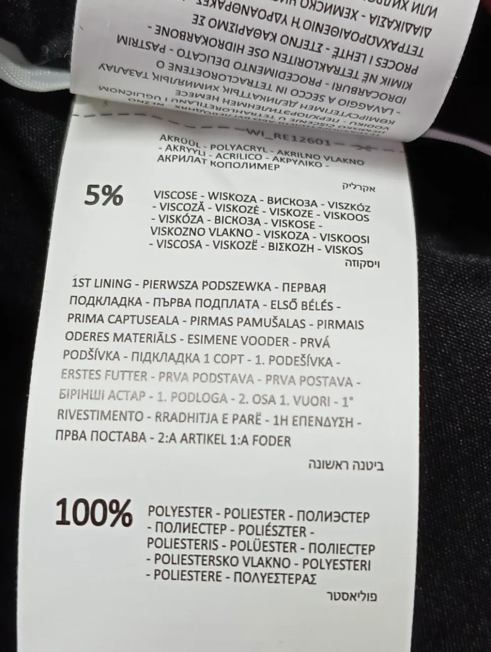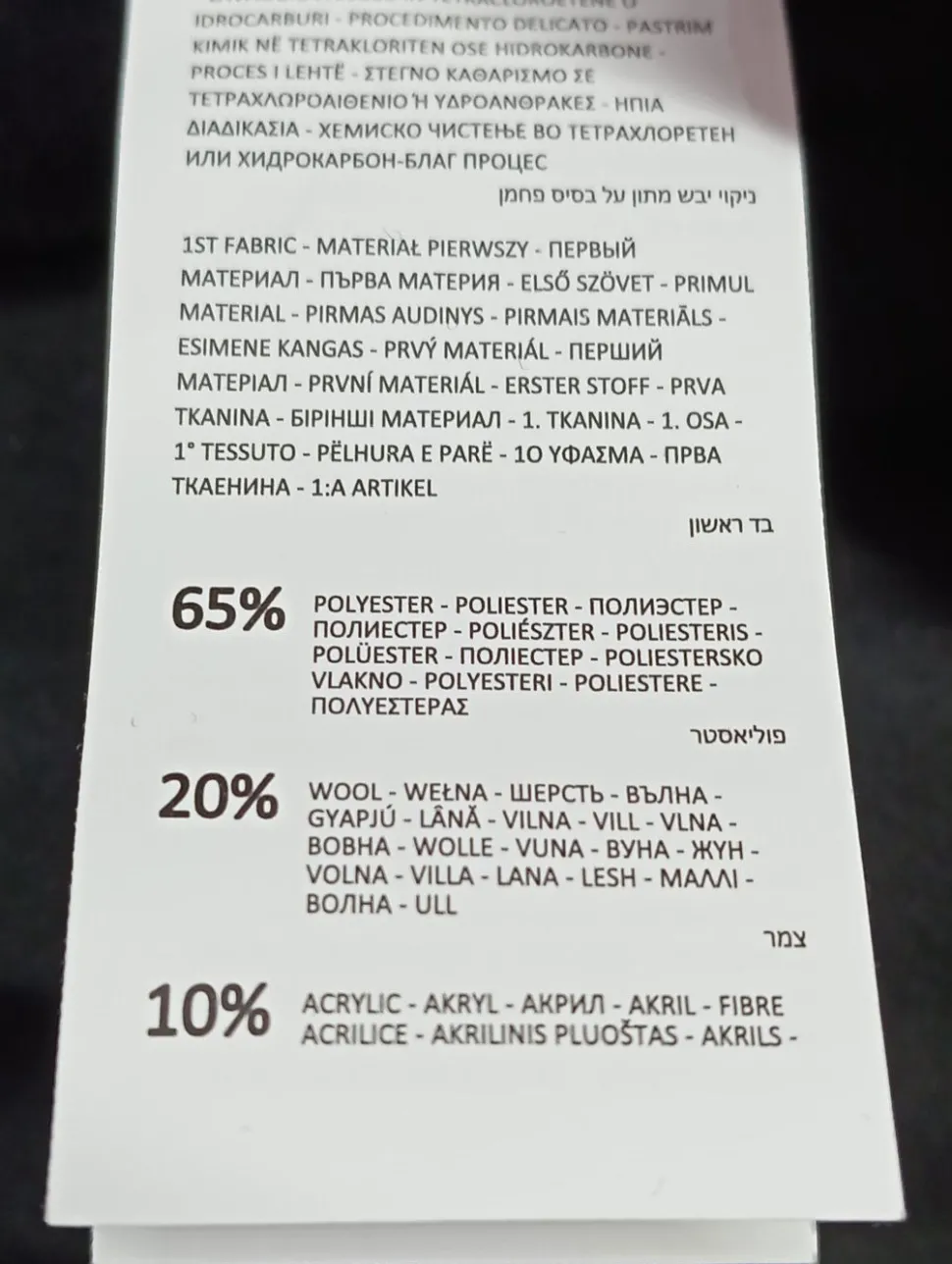 - Außenmaterial: 65% Viskose, 20% Wolle, 10% Polyacryl, 5% Viskose