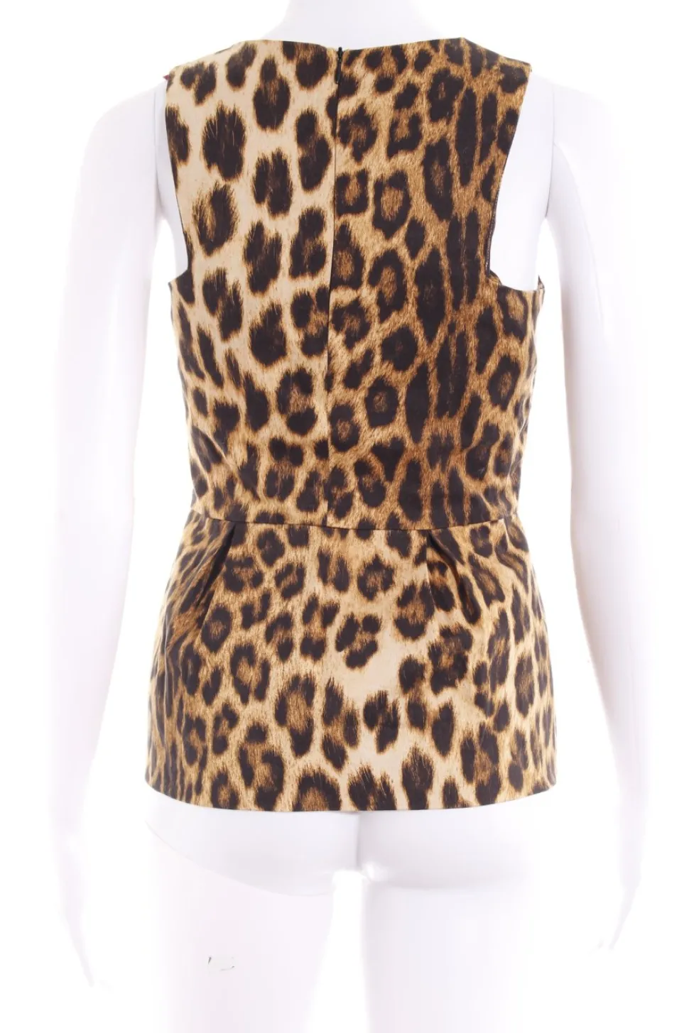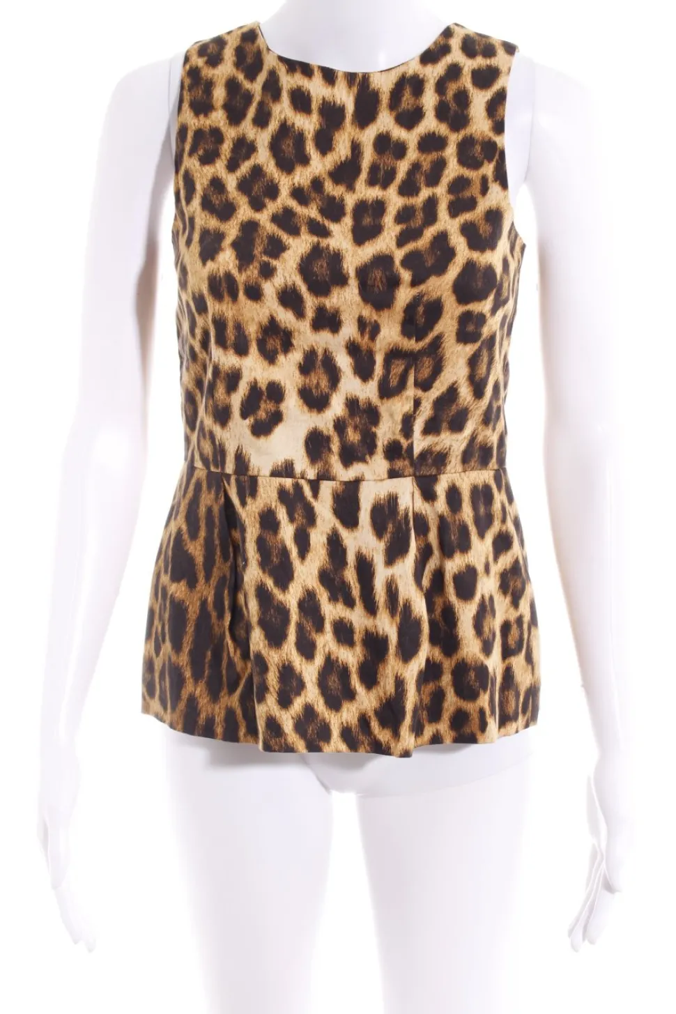 - Rundhalsausschnitt, Reißverschluss, Leomuster, glatt, leicht, Vintage-Look