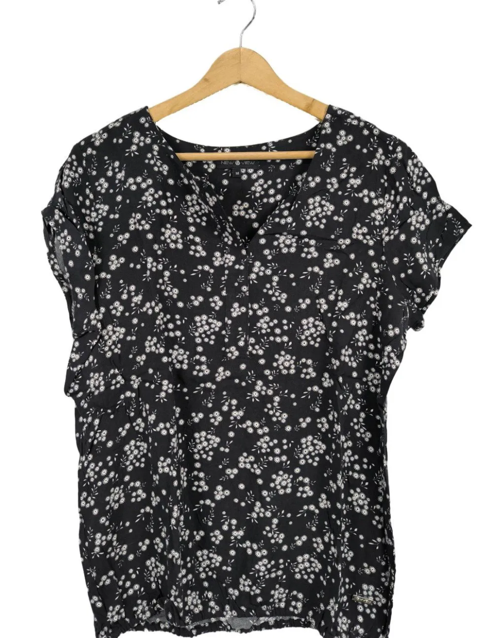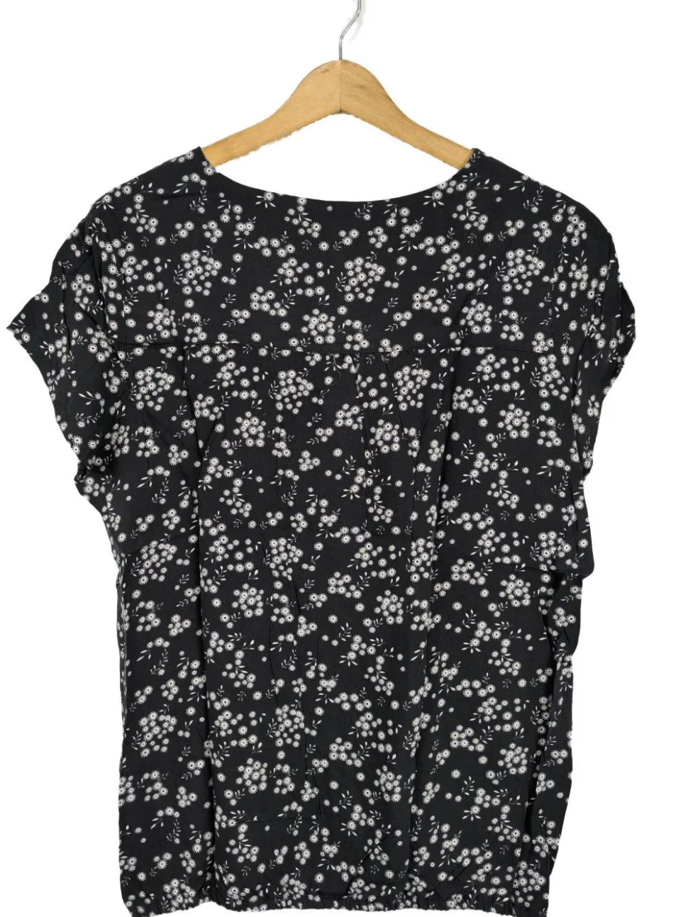 - V-Ausschnitt, Bund am Ärmelsaum, Allover-Druck, Blumenmuster, Casual-Look