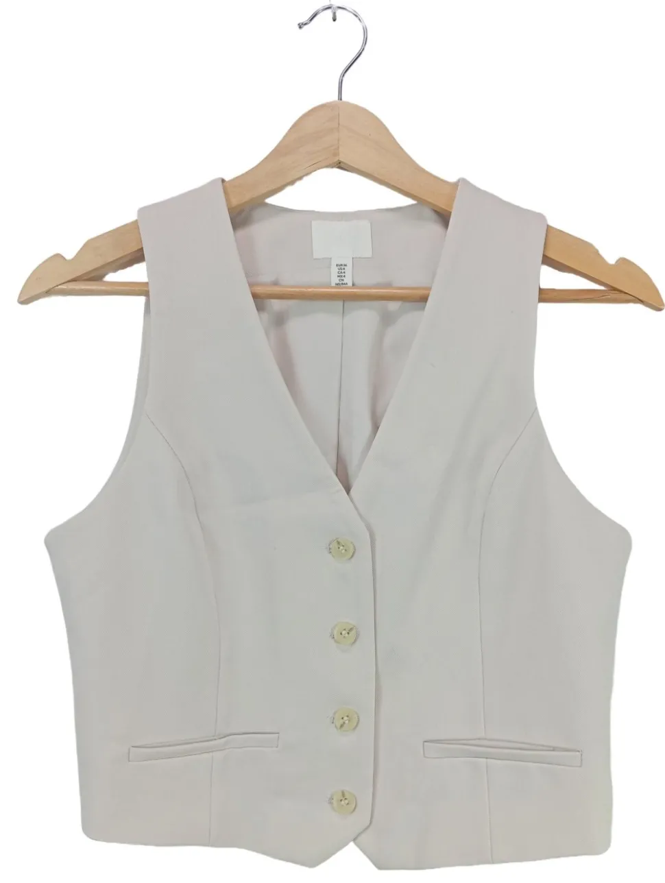 - tiefer V-Ausschnitt, angeschnittener Kragen, Knopfverschluss, Leistentaschen, Elegant, klassischer Stil