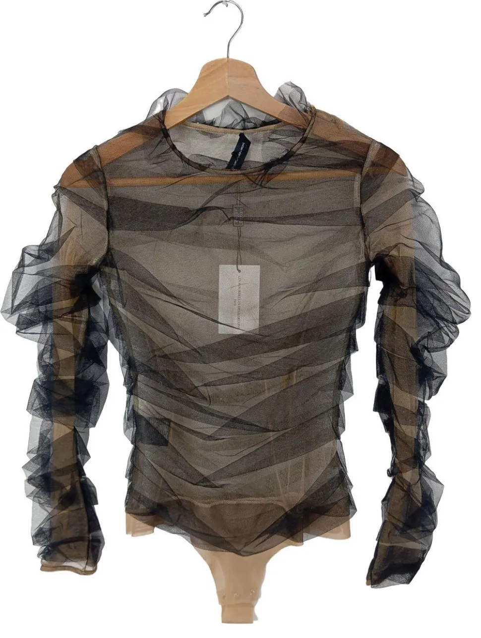 - Rundhalsausschnitt, Rüschenkragen, Falten am Ärmelsaum, Casual-Look, extravaganter Stil, Transparenz-Optik