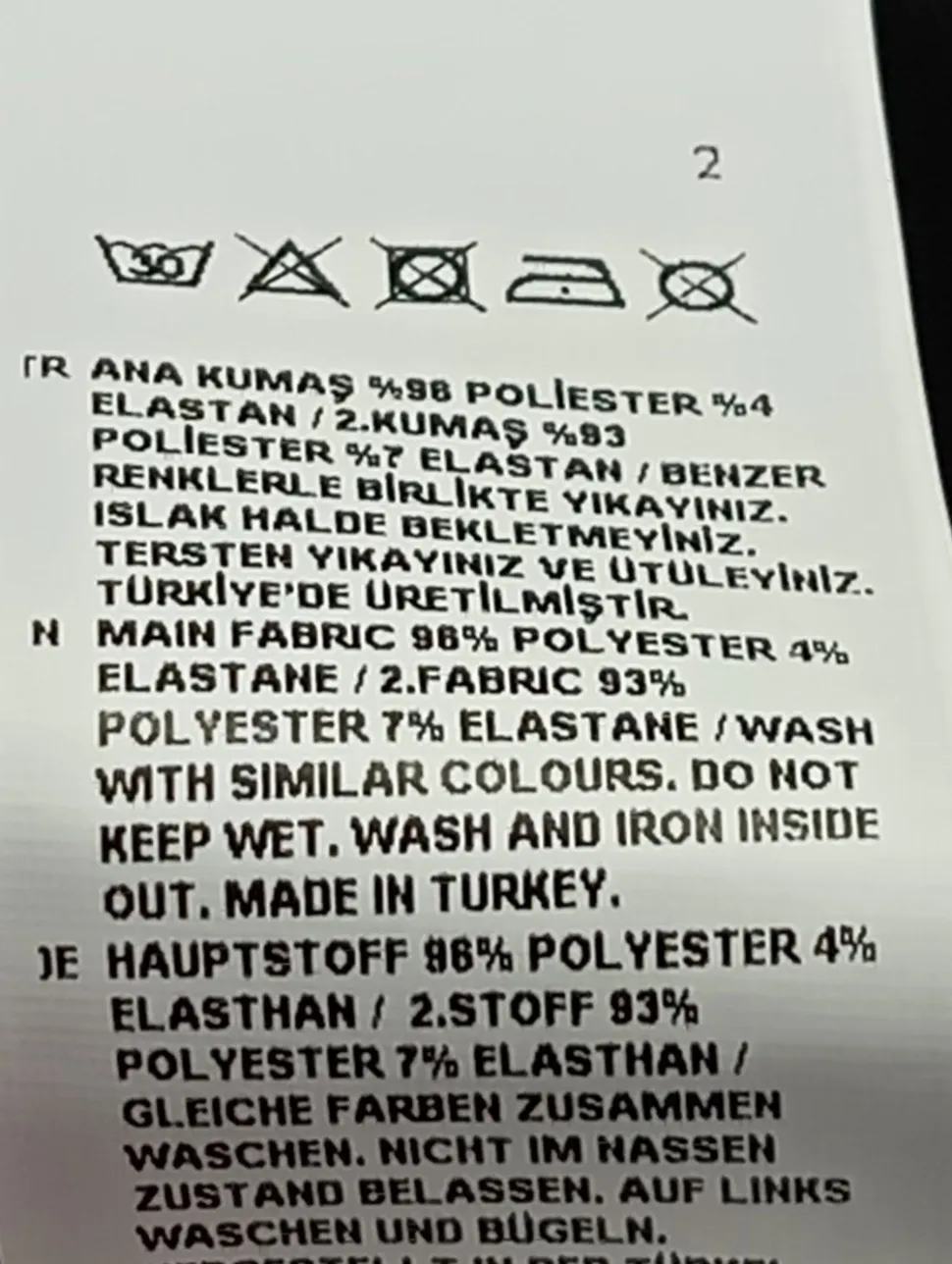 - Zweites Außenmaterial: 93% Polyester, 7% Elasthan