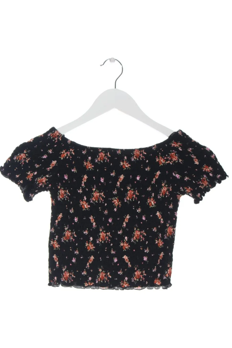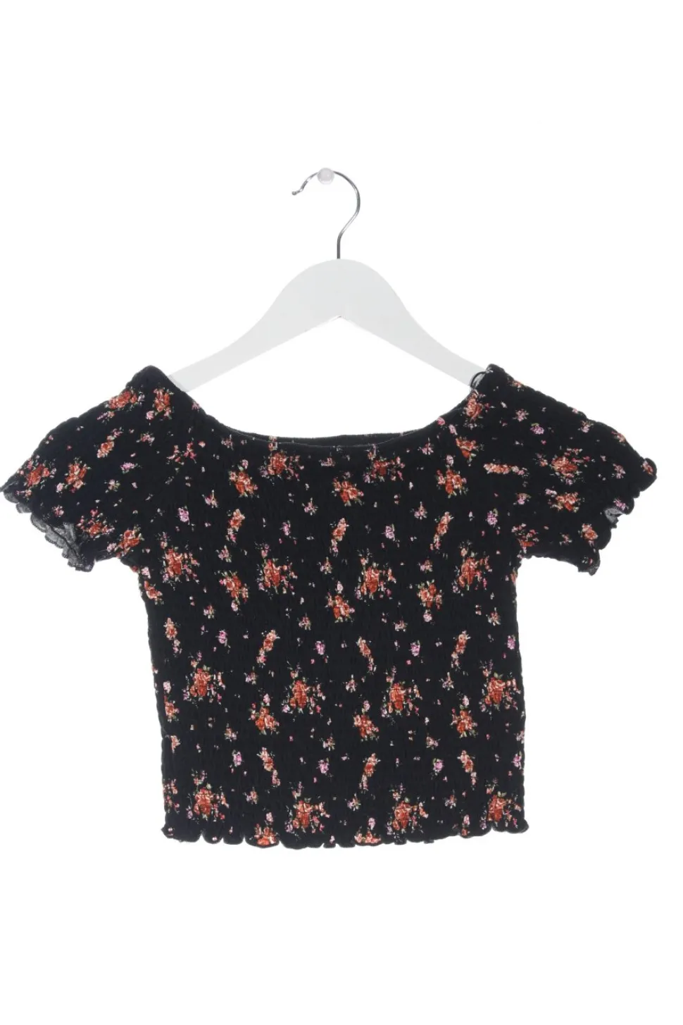 - Subdued Carmen-Bluse, schwarz-hellorange Allover-Druck