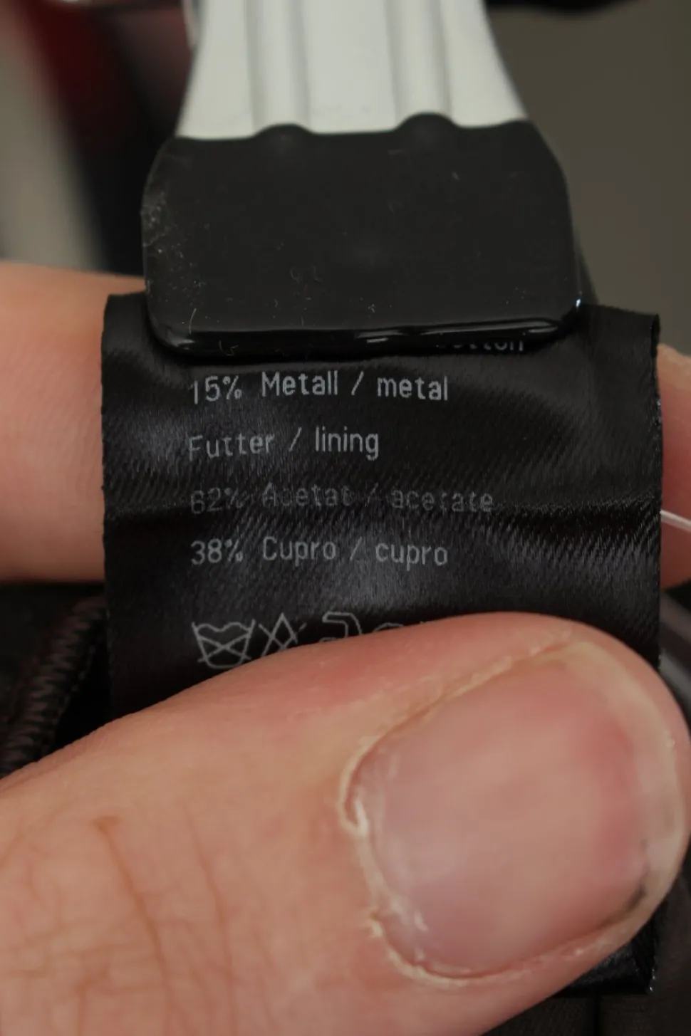 - Außenmaterial: 57% Acetat, 28% Baumwolle, 15% Metall