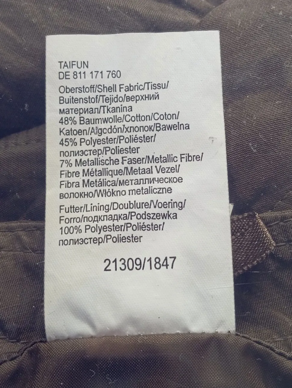 - Außenmaterial: 48% Baumwolle, 45% Polyester, 7% Metall