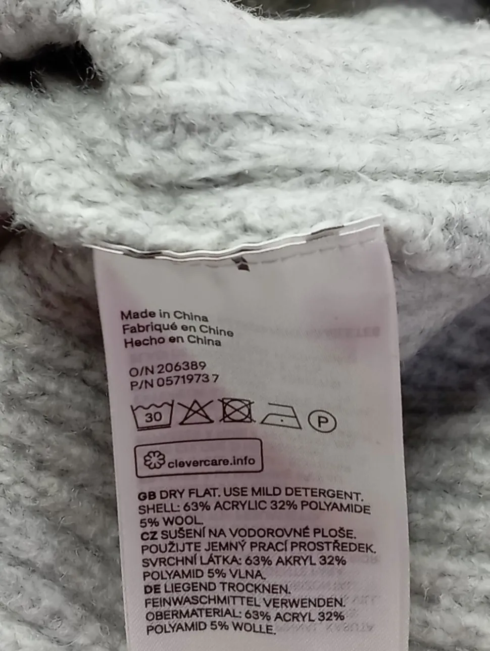 - Außenmaterial: 63% Polyacryl, 32% Polyamid, 5% Wolle