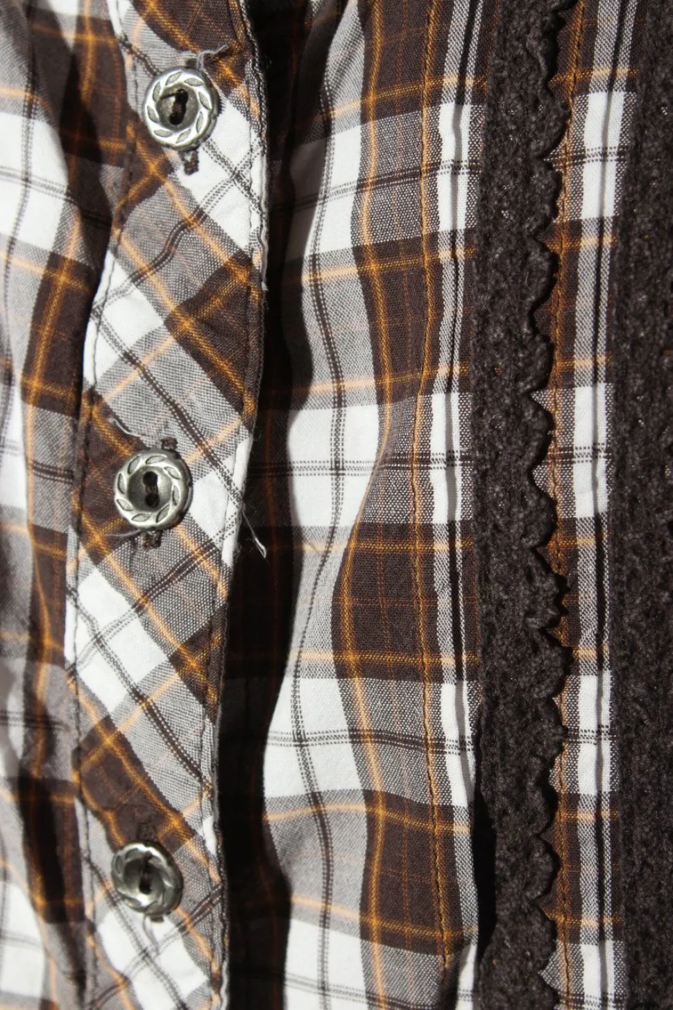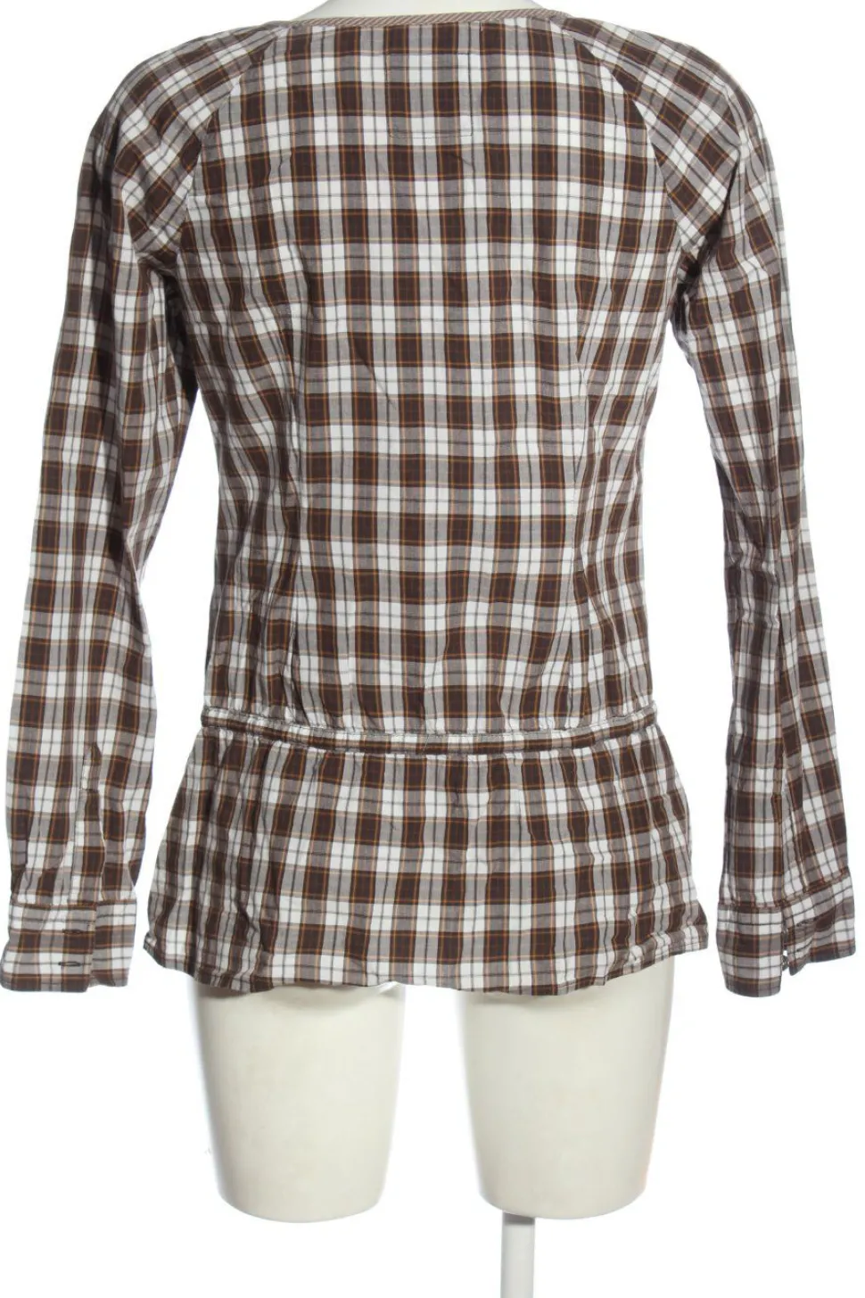 - U-Ausschnitt, Knopfverschluss am Ärmelsaum, Knopfverschluss, Knotenverschluss, Allover-Druck, Karomuster, Casual-Look, Elegant, klassischer Stil