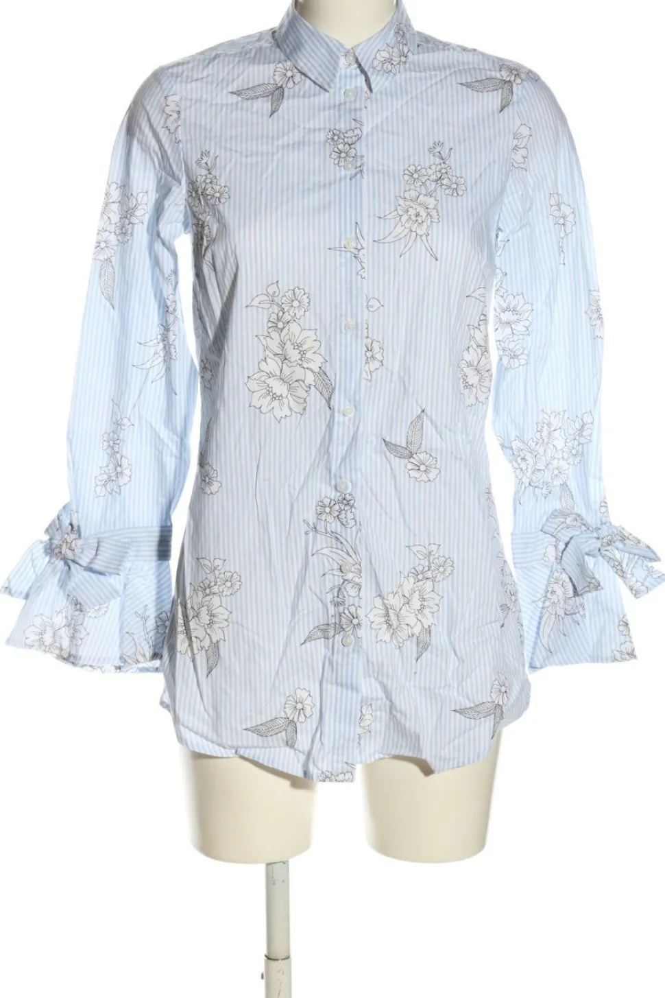 - Hemdkragen, Raffung am Ärmelsaum, Knopfverschluss, Allover-Druck, Blumenmuster, Streifenmuster, Casual-Look, schlichter Stil