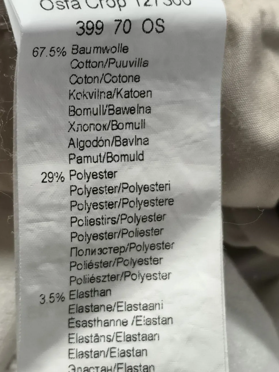 - Außenmaterial: 67% Baumwolle, 29% Polyester, 4% Elasthan