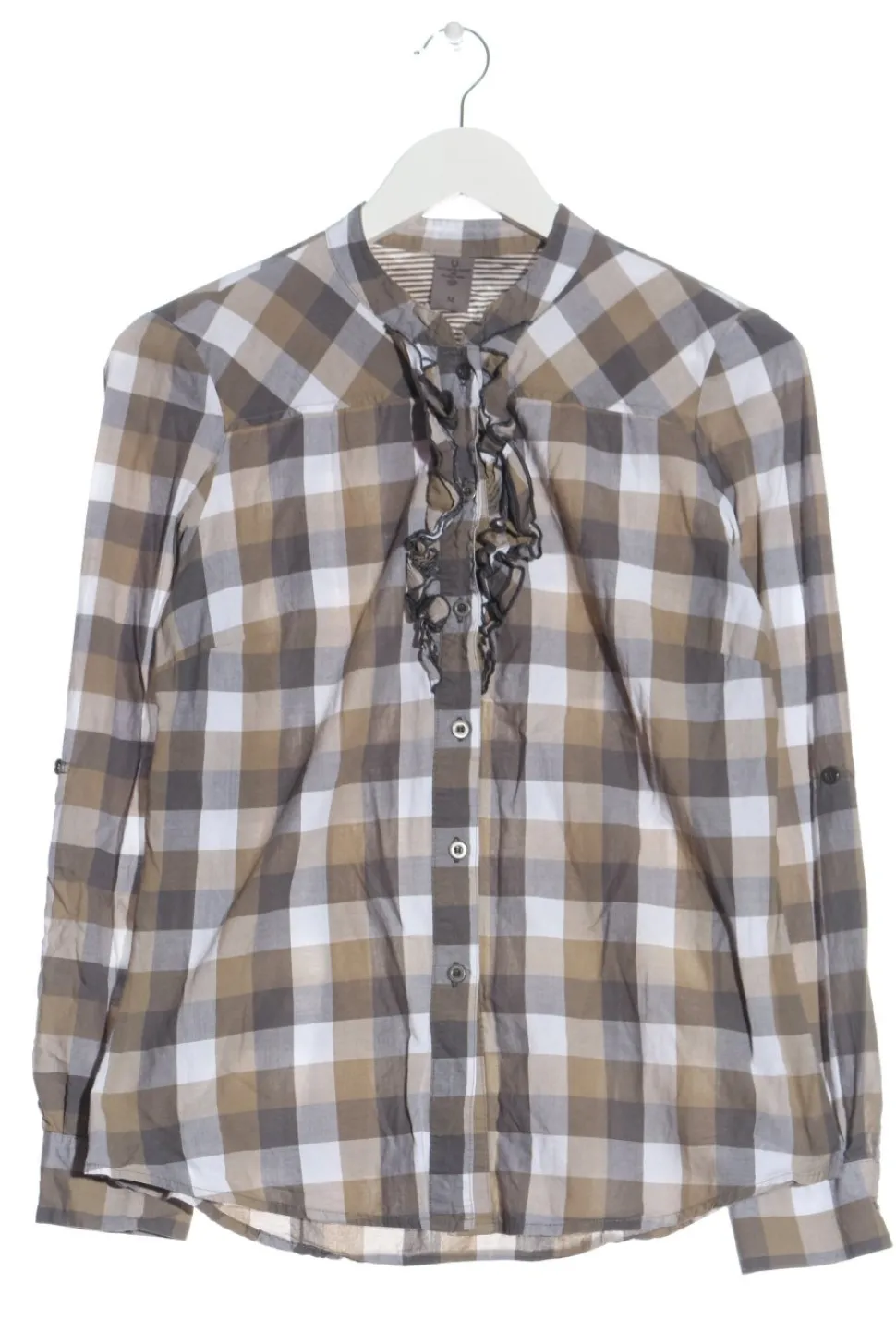- Rundhalsausschnitt, Knopfverschluss am Ärmelsaum, Knopfverschluss, Karomuster, Casual-Look, Elegant, klassischer Stil