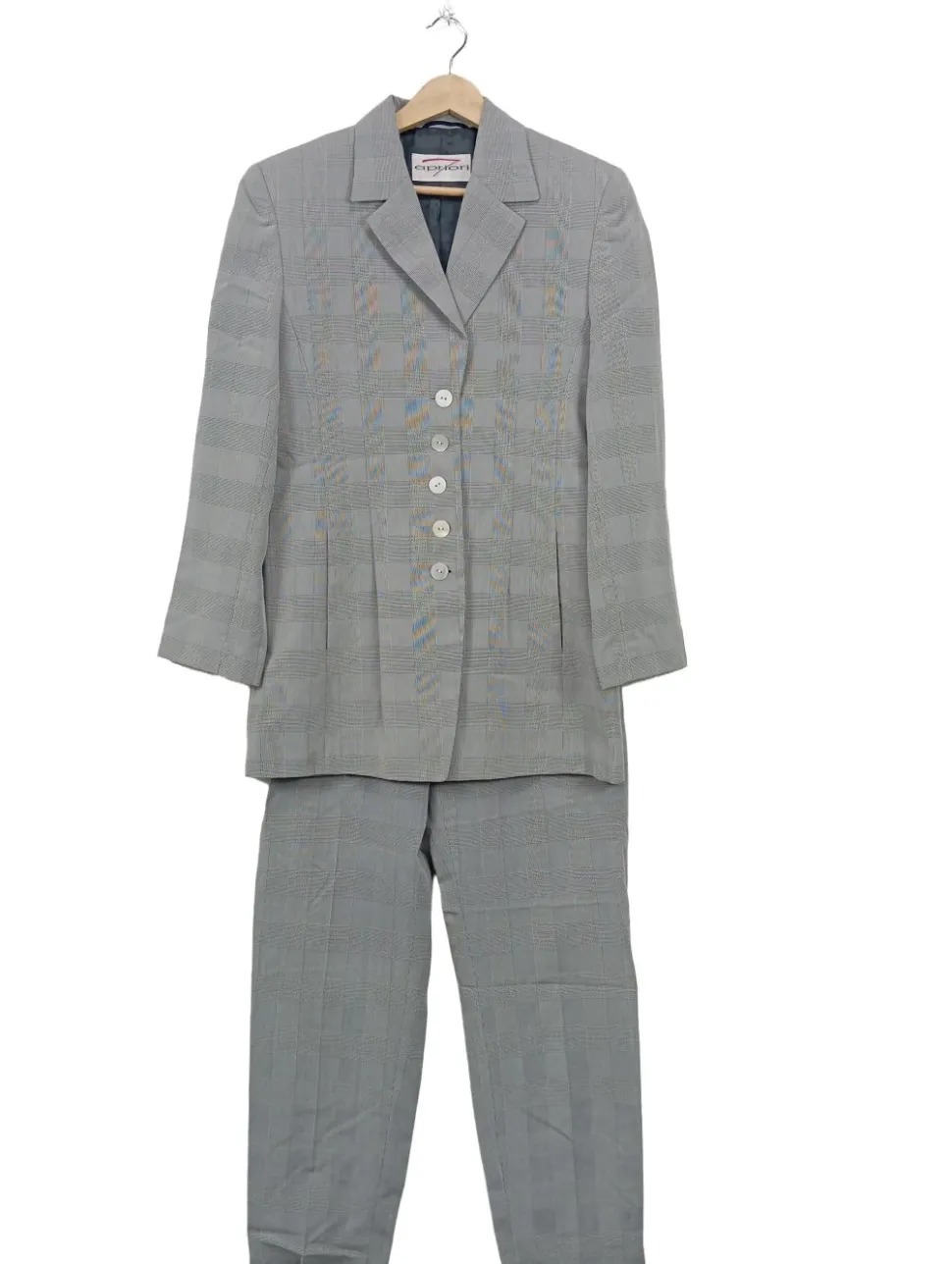- V-Ausschnitt, Umlegekragen, Bund am Ärmelsaum, Knopfverschluss, Nahteingriffstaschen, Karomuster, Business-Look, klassischer Stil, Vintage-Look