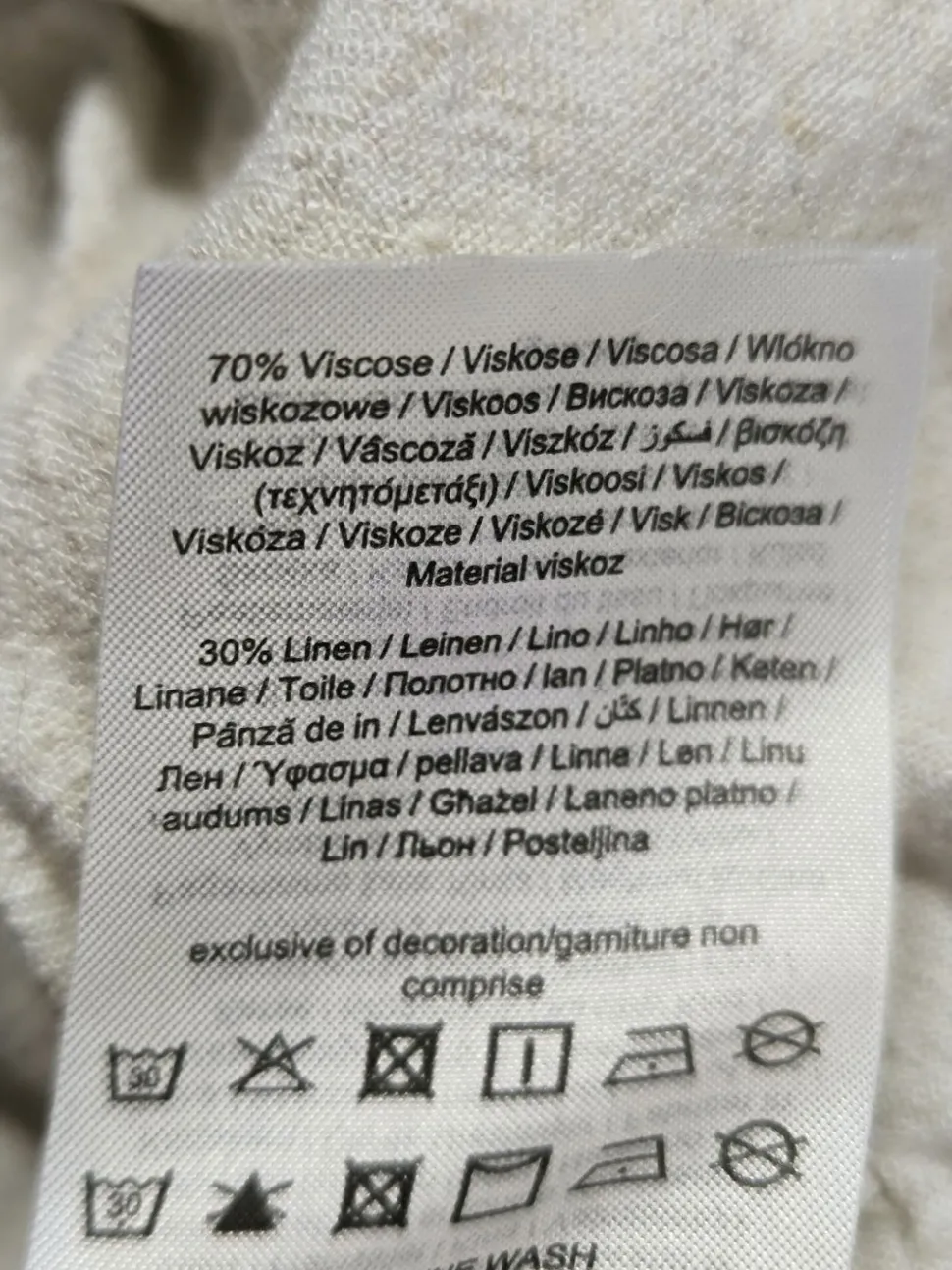 - Außenmaterial: 70% Viskose, 30% Leinen