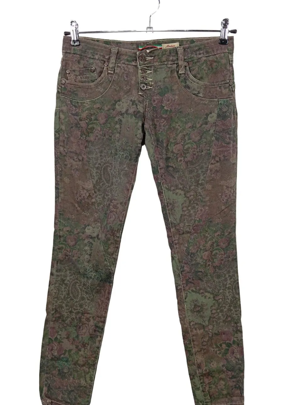 - Knopfverschluss, 5-Pocket-Style, Allover-Druck, Blumenmuster, Casual-Look, schlichter Stil, Street-Fashion-Look