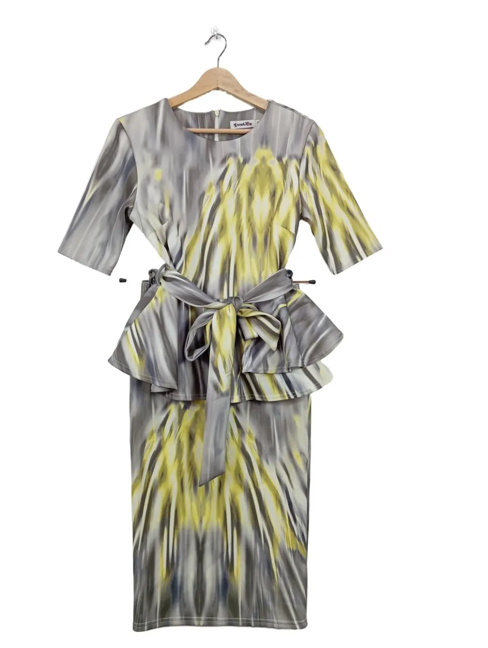 - Rundhalsausschnitt, Bund am Ärmelsaum, Knotenverschluss, Nahtreißverschluss, Mustermix, Casual-Look, Elegant, Vintage-Look